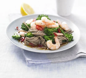 Teriyaki prawns & broccoli noodles